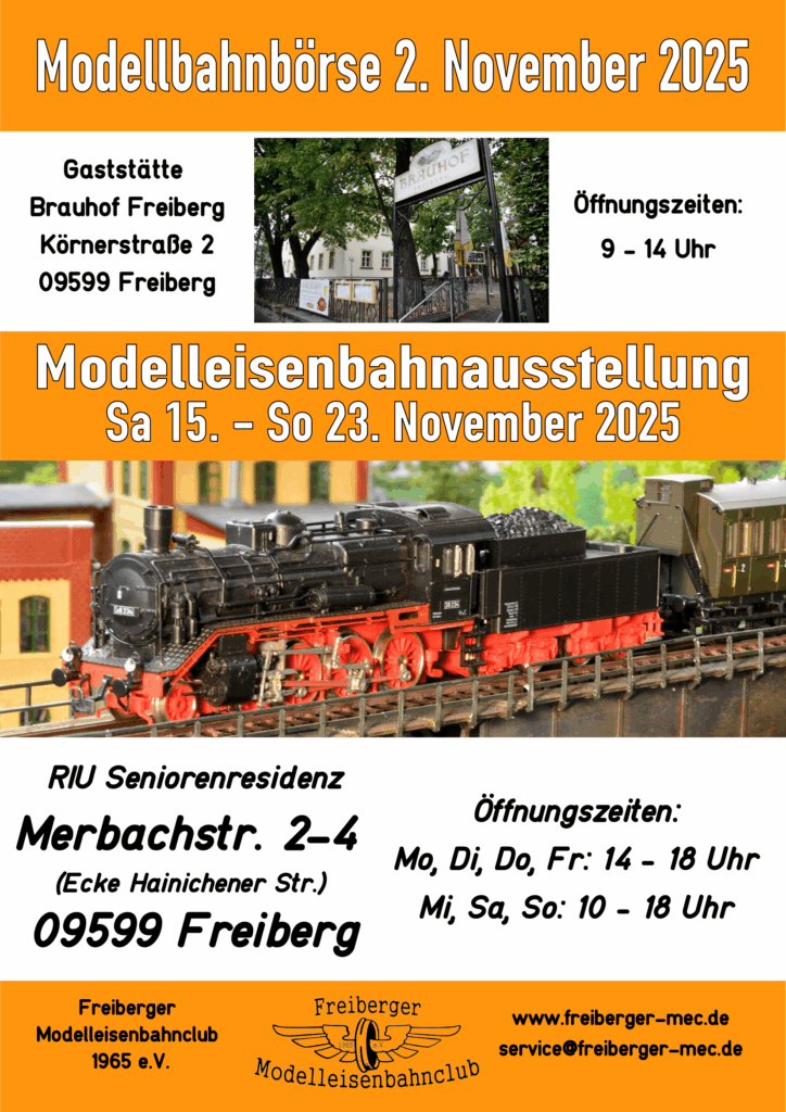 Veranstaltungen Veranstaltungen Modellbahnbörse – 02. November 2025 &Modelleisenbahnausstellung – 15. bis 23. November 2025